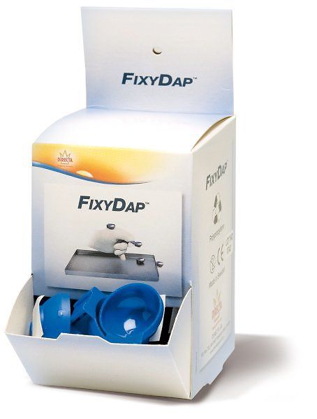 Käytännöllinen ja hygieeninen vaihtoehto puhdistuspastan annosteluun. Annostele tarvittava määrä puhdistuspastaa FixyDap kuppiin ja kiinnitä kupin pohjassa olevalla tarralla.