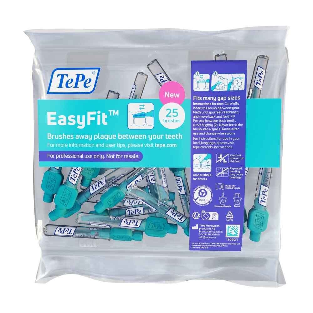 TePe EasyFit™ on kartionmuotoinen hammasväliharja, joka puhdistaa tehokkaasti hammasvälit, joihin tavallinen hammasharja ei ylety. TePe EasyFit -hammasväliharja mukautuu erikokoisiin hammasväleihin kartiomaisen muotoilunsa ansiosta. Poistaa tehokkaasti plakkia hampaiden välistä ja auttaa ehkäisemään ientulehdusta, kariesta sekä pahanhajuista hengitystä. Pehmeät harjakset hammasväliharjan yläosassa tekevät hammasväliharjasta hellävaraisen päivittäiseen käyttöön.