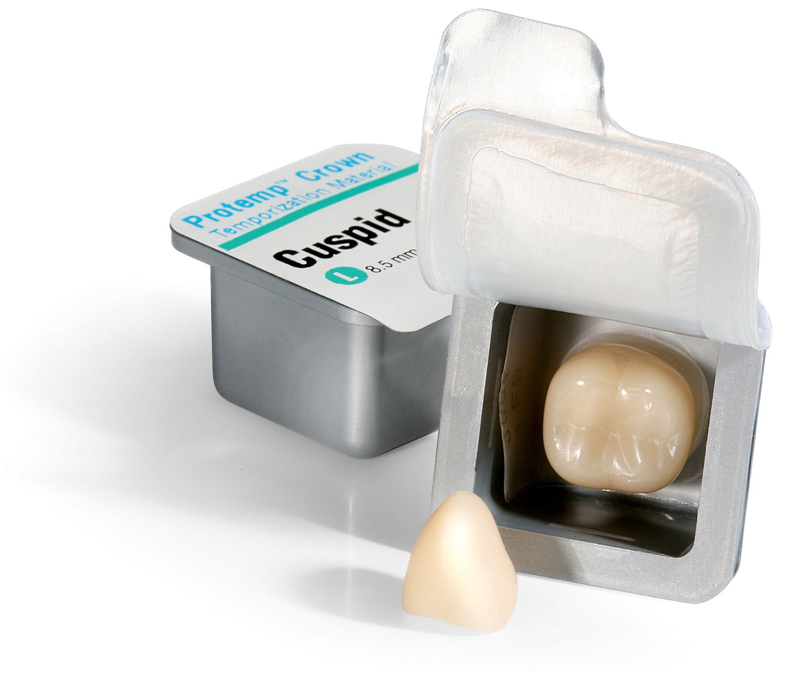 Yksilöllisesti muotoiltava, valokovetteinen väliaikaiskruunu. Pakkauksessa 5 väliaikaiskruunua, käyttöohjeet ja 2x kruunun mittatulkki. Soveltuu isoille kulmahampaille.