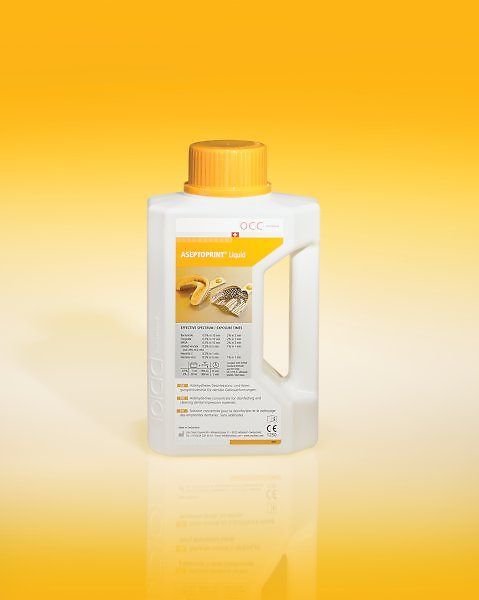 ASEPTOPRINT® Liquid -tiiviste hammashoidon jäljennösten desinfiointiin ja puhdistukseen. Erittäin tehokas desinfiointiaine sopii kaikentyyppisille jäljennösmateriaaleille, kuten alginaatti, polyeetteri, polysulfiitti, A-silikoni, K-silikoni sekä oikomiskojeille ja hammasproteeseille. ASEPTOPRINT® Liquid ei vaikuta jäljennösten muotopysyvyyteen tai kipsin yhteensopivuuteen jäljennösten kanssa. Ei sisällä aldehydejä. Tukkupakkaus 6 x 1 l.