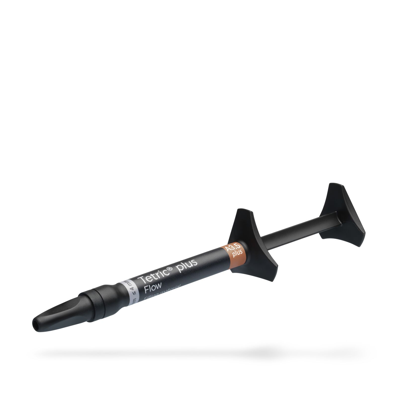 Universaali viskositeetti, tarkka annostelu ja korkea stabiilisuus. Hyvä juoksevuus. Mukautuu kaviteetin seinämiin ja sillä on itsestään tasaava vaikutus. Muovin päällystystä ei tarvita. Neljä ainutlaatuista sävyä kattaa kaikki VITA:n klassiset sävyt ja Bleach-sävyn. Voidaan kovettaa jopa 4 mm kerroksissa. Kaviteettiluokille I, II, III, IV ja V. Tetric plus Flow A3,5 plus kattaa Vita-sävyt A3,5, A4, B3, B4 ja C4. Pakkaus sisältää ruiskun lisäksi 5 kpl 19G vientikärkiä.